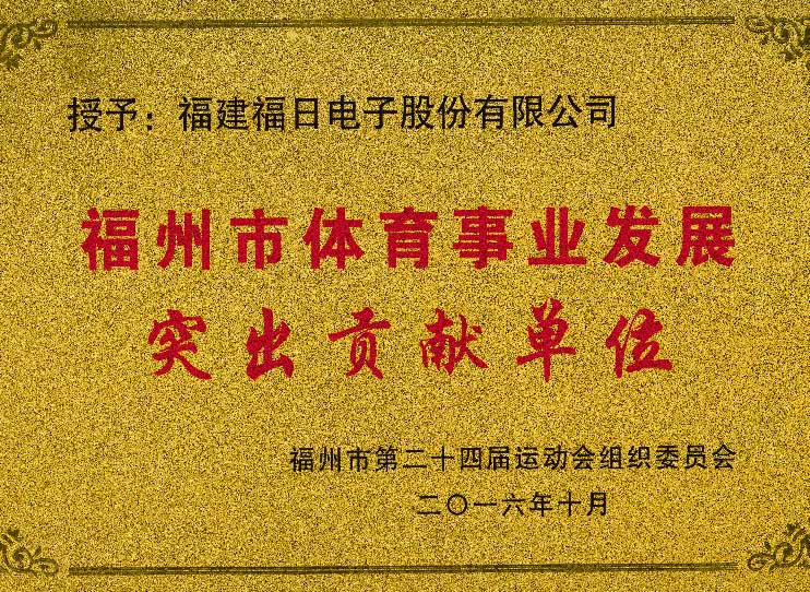 近日,公司被福州市第二十四屆運動會組織委員會授予“福州市體育事業發展突出貢獻單位”稱號。公司長期關心公益事業,熱心支持福州市體育事業的發展。本屆市運會曆時54天tian,比bi賽sai設she項xiang和he參can賽sai規gui模mo均jun為wei曆li屆jie之zhi最zui。公gong司si獲huo得de本ben次ci殊shu榮rong,是shi福fu州zhou市shi第di二er十shi四si屆jie運yun動dong會hui組zu織zhi委wei員yuan會hui對dui公gong司si支zhi持chi福fu州zhou市shi體ti育yu事shi業ye發fa展zhan的de肯ken定ding。