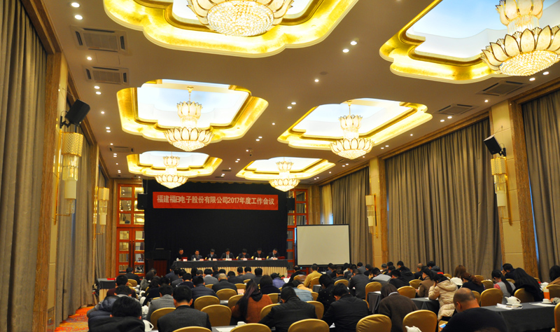 2017年3月3日,福日電子在福州市召開2017年度工作會議。溫春旺總裁代表公司黨委會、董事會和經營班子向大會做了工作報告,全麵回顧2016年工作,精心部署2017年工作。卞誌航董事長在會上發表重要講話,傳達了福建省電子信息集團工作會議精神,並從做大做強三大主業、加大資本運作力度、強化人才隊伍建設等八個方麵談了公司的發展問題,闡述了公司的發展目標,強調了公司2017年的工作重點。