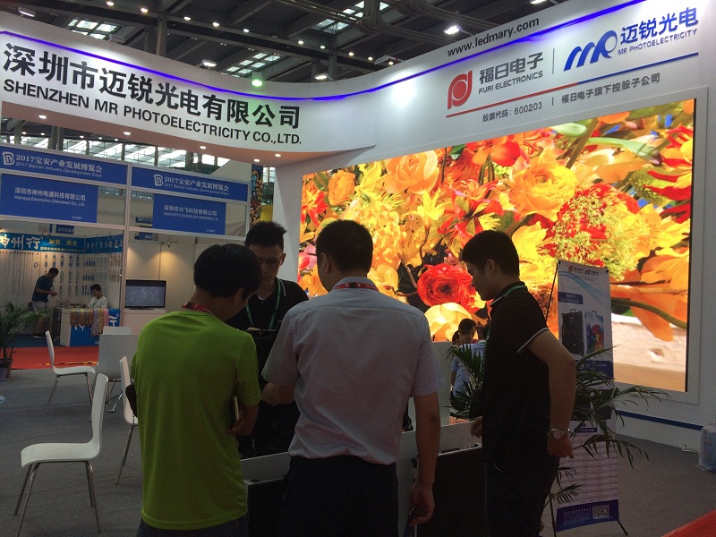 2017年7月27日,第二屆寶安產業發展博覽會在深圳會展中心一號館開展,福日電子成員企業深圳市邁銳光電有限公司攜小間距UTV1.25和租賃係列R3等暢銷產品,在電子信息精密製造區C1714—C1725展位亮相。參展期間,邁銳光電小間距產品和租賃係列產品廣受客商關注。