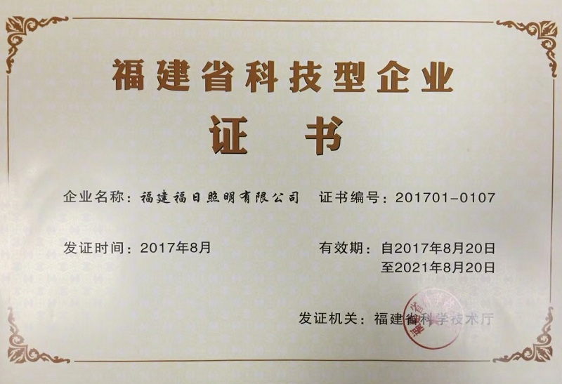 近日,福建省科學技術廳公布2017年第一批福建省科技型企業備案名單,福日電子控股企業福建福日照明有限公司被推薦認定為福建省科技型企業。