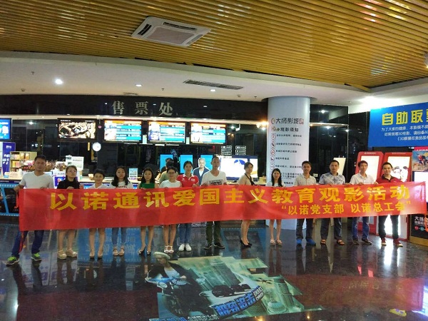 為迎接黨的十九大勝利召開,進一步激發黨員的愛國主義情懷,2017年 9月23日,廣東東莞市大朗鎮企業工委、社會組織工委和“陽光雨”黨群服務中心在中影大揚長盛影城開展“兩新”黨員愛國教育觀影活動,福日電子二級控股子公司廣東以諾通訊有限公司黨支部組織公司黨員、工會會員參加本次活動。
