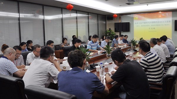 最後,李震書記結合卞總的宣講對公司本部及各成員企業、事業部進一步深入推進習近平新時代中國特色社會主義思想“大學習”熱潮提出了要求,一要堅持領導幹部率先垂範,帶動全體職工共同學習。二要多形式加強意識形態宣傳教育,使習近平新思想進企業、進基層。三要學用結合,以黨的創新理論武裝頭腦、指導實踐,推進企業持續穩步健康發展。