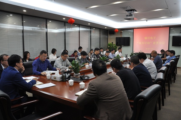 2018年10月29日,福建福日電子股份有限公司召開“雙百行動”宣貫會議,本部中層及以上管理人員、在榕成員企業、事業部主要負責人等參會。會上,本部資運部負責人介紹了公司“雙百行動”綜合改革實施方案。福建省電子信息集團副總經理兼福日電子董事長卞誌航出席會議並講話。