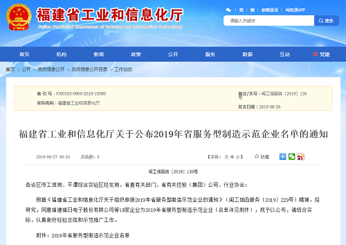 2019年8月26日,福建省工業和信息化廳公布了2019年省服務型製造示範企業名單,福建福日電子股份有限公司入選該名單。