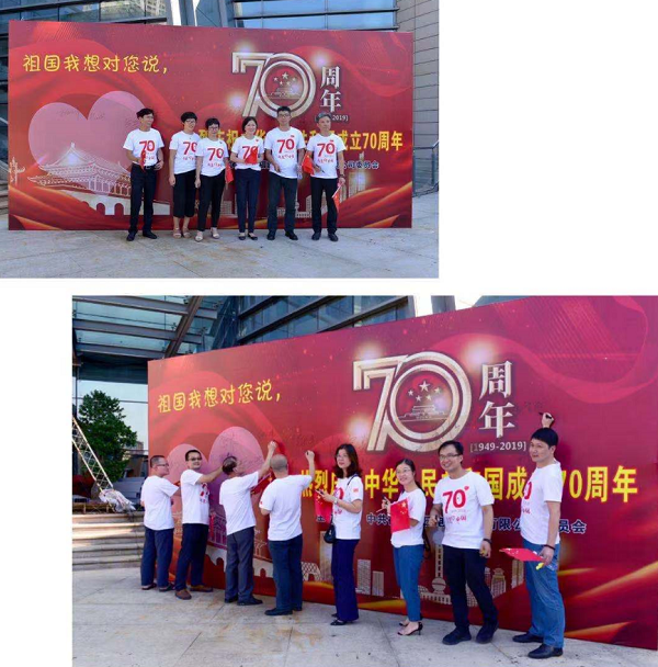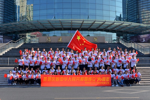 2019年9月以來,由福日電子黨委主辦、各所屬企業協辦的慶祝新中國成立70周年係列活動陸續展開,9月26日下午活動進入高潮。福日電子本部及所屬在榕企業在福州五一廣場隆重舉辦了“我和國旗同框”百人合影和“祖國我想對您說”活動。公司黨委書記李震等公司領導和各企業幹部職工共130餘人參加了活動。