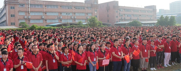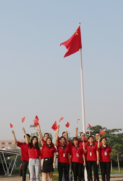 為熱烈慶祝新中國成立70周年,充分激發全體員工的愛國主義情懷,2019年9月30日ri上shang午wu,福fu日ri電dian子zi全quan資zi子zi公gong司si深shen圳zhen市shi中zhong諾nuo通tong訊xun有you限xian公gong司si在zai東dong莞guan以yi諾nuo工gong業ye園yuan區qu舉ju行xing了le莊zhuang嚴yan的de升sheng國guo旗qi儀yi式shi。幾ji千qian名ming員yuan工gong身shen著zhe統tong一yi紅hong色se司si服fu,排pai著zhe整zheng齊qi的de方fang陣zhen。伴ban隨sui著zhe雄xiong壯zhuang的de國guo歌ge聲sheng,鮮xian豔yan的de五wu星xing紅hong旗qi冉ran冉ran升sheng起qi,全quan體ti員yuan工gong滿man懷huai崇chong敬jing之zhi情qing向xiang國guo旗qi行xing注zhu目mu禮li,愛ai國guo愛ai企qi的de激ji情qing在zai大da家jia心xin中zhong激ji蕩dang。升sheng旗qi儀yi式shi結jie束shu後hou,公gong司si還hai組zu織zhi員yuan工gong開kai展zhan“我與國旗”同框合影活動。