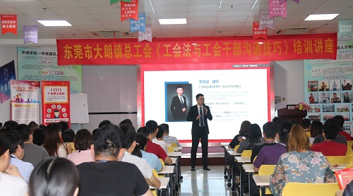 為了讓企業員工更好了解《工會法》,提升工會幹部綜合素質,促進工會幹部更好服務廣大職工。2019年10月15日,東莞市大朗鎮總工會在福日電子二級控股子公司廣東以諾通訊有限公司舉辦“工會法與工會幹部溝通技巧”為主題的宣傳講座,廣東省總工會、東莞市總工會、大朗鎮總工會相關負責人與以諾通訊員工代表共計150餘人聆聽了講座。