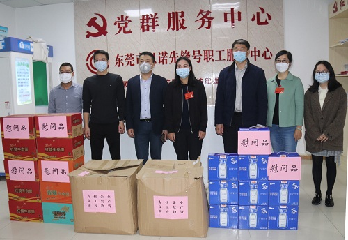 東莞市大朗鎮人大、總工會等單位向以諾通訊贈送防疫保障物資