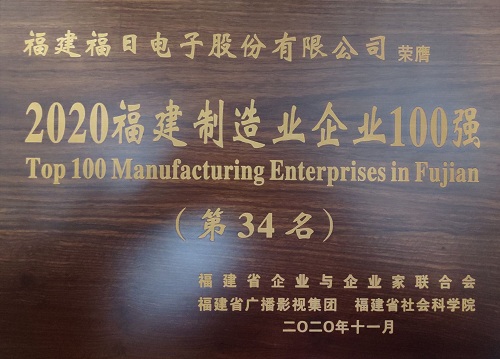 2020年11月20日,2020福建企業100強研究發布大會暨福建企業家大講壇在寧德市舉行,福日電子總裁楊韜受邀參會。會上公布了2020福建企業100強、福建製造業企業100強等榜單,福日電子入選2020福建製造業企業100強(第34名)。