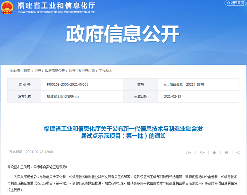 近日,福建省工信廳公布新一代信息技術與製造業融合發展試點示範項目(第一批)名單,福建福日電子股份有限公司項目“基於數據分析的精準決策支持能力”入選該名單。該名單由各設區市工信部門項目評選推薦,主要涵蓋5G+工業互聯網、工業互聯網、工業APP、企業上雲和大數據五個方麵。