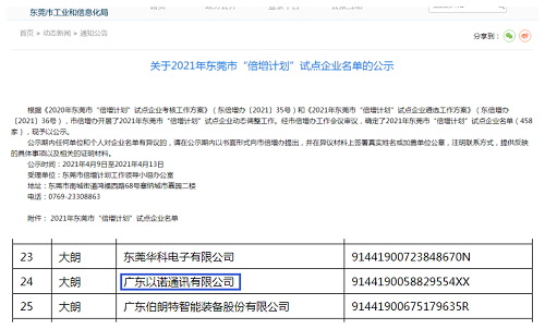 近日,東莞市倍增計劃工作領導小組辦公室發布了2021年東莞市“倍增計劃”試點企業名單,福日電子二級控股子公司廣東以諾通訊有限公司入選該名單。此次認定的“倍增計劃”試點企業重點聚焦在東莞市製造業企業、生產性服務業企業、軟件與信息技術服務業企業。