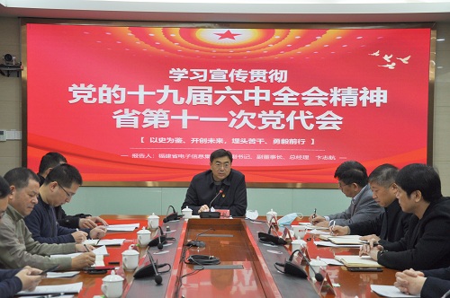 2021年12月31日,福建省電子信息集團黨委副書記、副董事長、總經理卞誌航到福日電子作黨的十九屆六中全會精神、省第十一次黨代會精神專題宣講。集團相關部室負責人、福日電子領導班子成員及各部門負責人等參加宣講會。