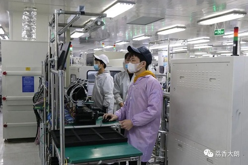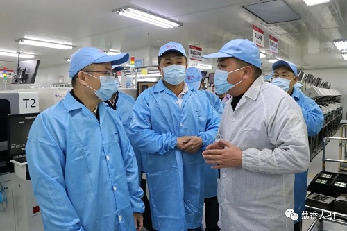 萬卓培一行在大朗鎮相關負責人的陪同下,前往福日電子二級控股子公司廣東以諾通訊有限公司開展調研,深入企業車間,了解企業生產情況以及未來發展規劃,並就企業提出的生產經營中問題和困難進行了交流。
