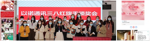源磊科技、邁銳光電、以諾通訊等成員企業也通過贈送賀卡鮮花、線上有獎留言點讚、三八紅旗手頒獎會等活動為女職工送上節日的祝福。