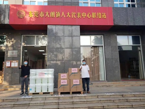 在東莞市大朗鎮,一場愛心接力也在上演。2月27日,東莞市企業家範仁強向以諾通訊贈送4噸84消毒液、3000瓶酒精、5萬個醫用口罩等大批防疫物資。為支持大朗鎮一線疫情防控工作,以諾通訊將愛心接力,又將這批防疫物資部分轉贈給大朗鎮經信局、資產經營公司、黃草朗派出所、鬆木山村委、水平村委等相關單位,共築疫情防控堅實後盾。
