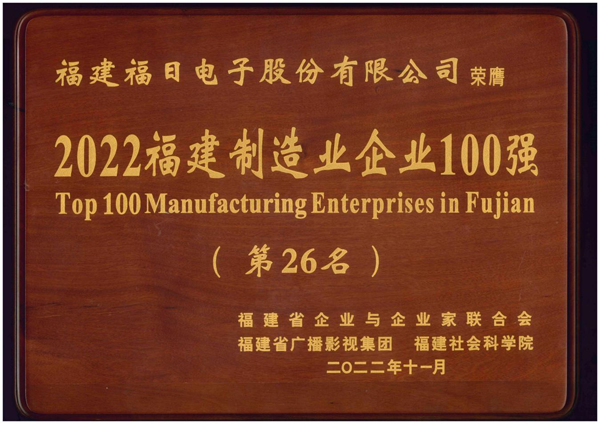 12月7日下午,2022福建企業100強發布大會在莆田舉行,會上發布了“2022福建企業100強”“2022福建製造業企業100強”“2022福建服務業企業100強”“2022福建戰略性新興產業企業100強”4個榜單。福建福日電子股份有限公司連續4年入圍福建製造業企業100強,位列第26名,較去年提高8個位次,排名再創新高。這是繼該公司今年首度入圍“中國製造業企業500強”後的又一重大突破。