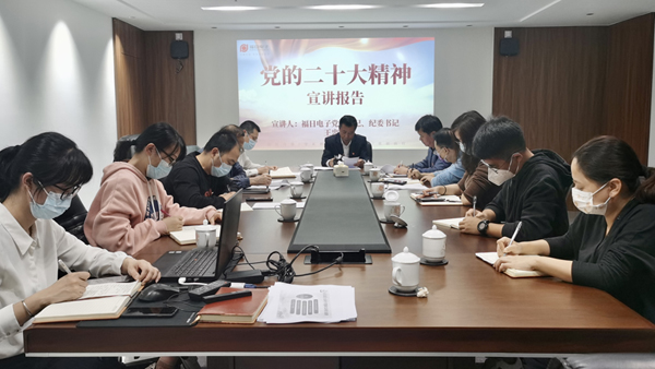 福日電子宣講團成員分別深入到各聯係企業,帶領企業職工學習黨的二十大精神並作《以黨的二十大精神為指引 開啟高質量發展新征程》專題黨課,全麵領悟黨的二十大提出的新思想、新觀點、新論斷。宣講重點圍繞黨的二十大主題和主要成果、過去5年的工作和新時代10年的偉大變革、馬克思主義中國化時代化、中國式現代化、全麵建設社會主義現代化國家的目標任務和堅持黨的全麵領導、全麵從嚴治黨等六個方麵,bingjiehechengyuanqiyesuozaideguangdongshengyufujianshengshinianjingjifazhanshiji,duidangdeershidajingshenjinxinglequanmianxitongdejiedu,rangqiyezhigongduiershidajingshenyoulegengshenrudelijie。