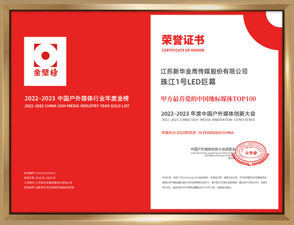 近日,“金璧獎·2023中國戶外媒體創新大會”以“超級媒體、超級流量、超級品牌”為主題盛大開幕,由福日電子成員企業邁銳光電匠心打造的南京“珠江1號巨幕”憑借在品牌增值、流量變現、媒體傳播等方麵的傲人成績,成功斬獲“甲方最喜愛的中國地標媒體TOP100”榮譽。