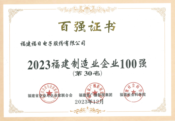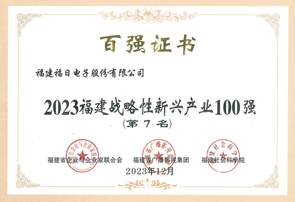 12月19日,在備受矚目的2023福建企業100強發布大會上,福日電子再次上榜,榮登福建製造企業100強第三十位、福建戰略性新興產業企業100強第七位。值得一提的是,這是福日電子首次入圍福建戰略性新興產業企業100強並躋身前列,也是公司連續第五年入圍福建省製造企業100強。
