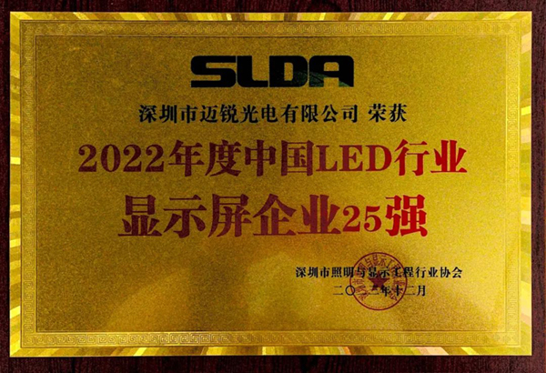 近日,在2024深圳市照明與顯示工程行業協會(SLDA)年會上,福日電子成員企業邁銳光電憑借在顯示技術領域的出色表現,榮獲“2022年度中國LED行業顯示屏25強企業”及“《Mini/Micro LED直顯屏舒適度評價方法》優秀參編團體”兩項重要榮譽。